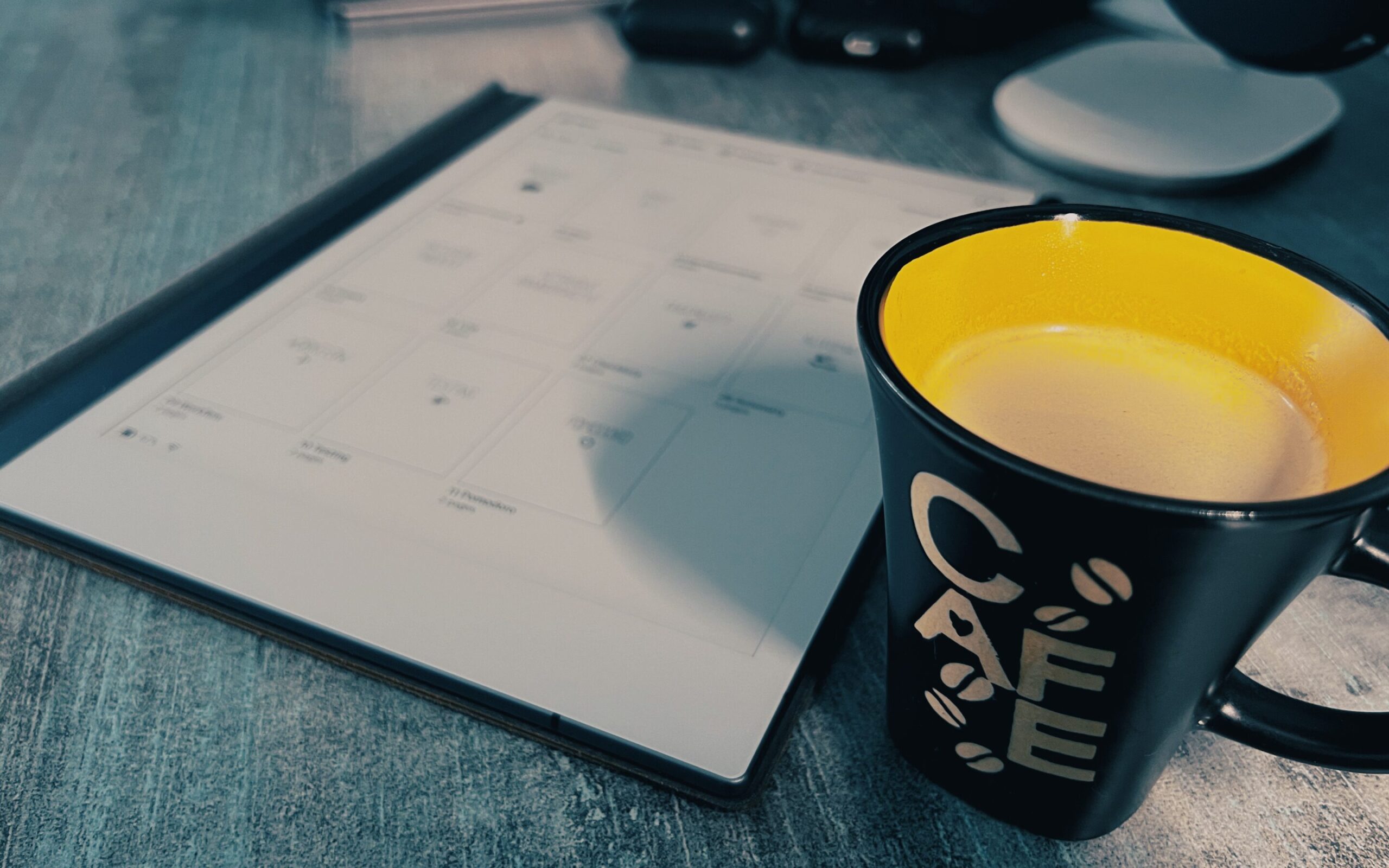 Momentálně je pro mě tím nejdůležitějším pracovní deník. Ve svém případě mám stránku rozdělenou na pomyslné poloviny. Zcela nahoře tučně datum, pod ním kaligrafickým štětcem Dnešní plán. Každý večer napíšu do nadcházejícího dne, na čem budu zcela jistě makat a v průběhu aktuálního dne jen doplňuji. Nic víc. K mému vlastnímu překvapení mi to bohatě stačí a před ranním stand-upem nemusím čumět do počítače. Mám klid na vlastní myšlenky, slunce v duši a pocit uspokojení z psaní. Můžu se soustředit (nejen) na práci. Zároveň si zřejmě posiluji paměť.